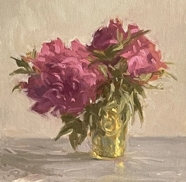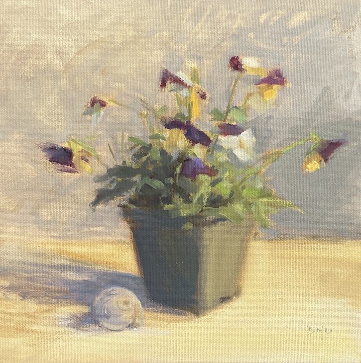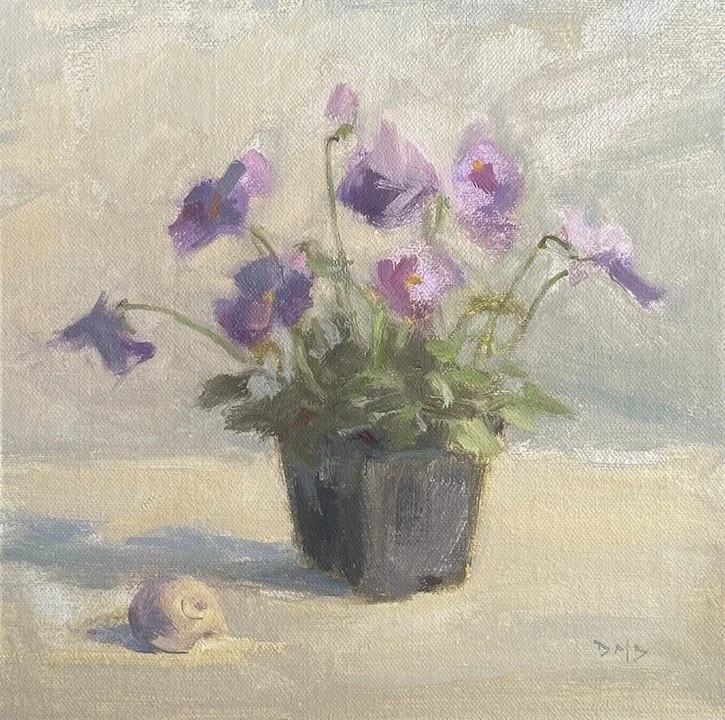 Johnn-Jump-Ups, Crimson Peonies, Purple Petunias, Purple Pansies, Pink Camilia.